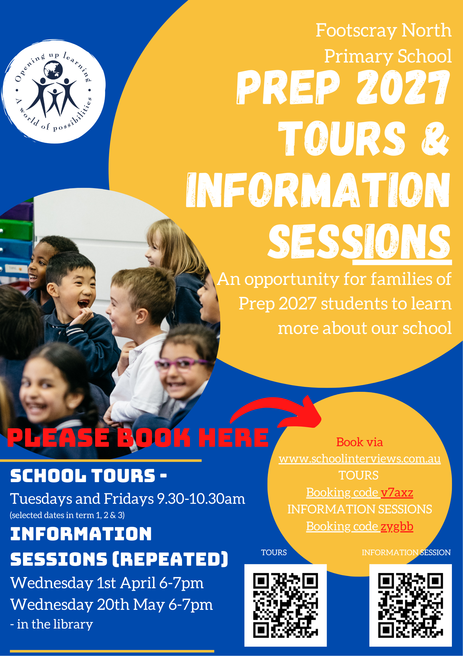 Please find information linked regarding school tours and information sessions for our 2027 Preps.